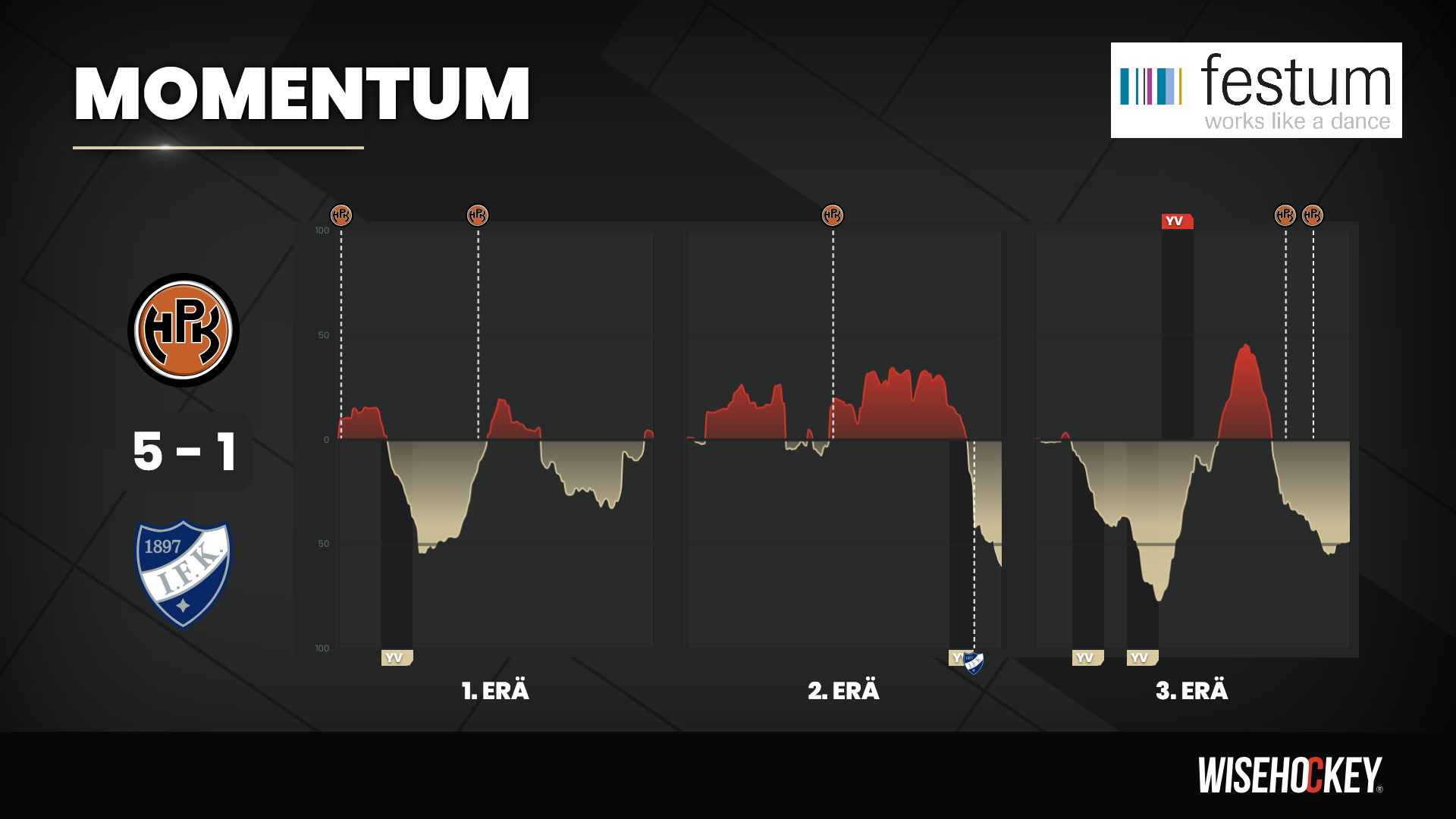 Viimeisessä erässä HPK onnistui tukkimaan IFK:n yritykset eikä ylivoimapelilläkään saatu maalia syntymään. Hämeenlinnalaiset onnistuivat vielä kahdesti tekemällä maalit tyhjiin.