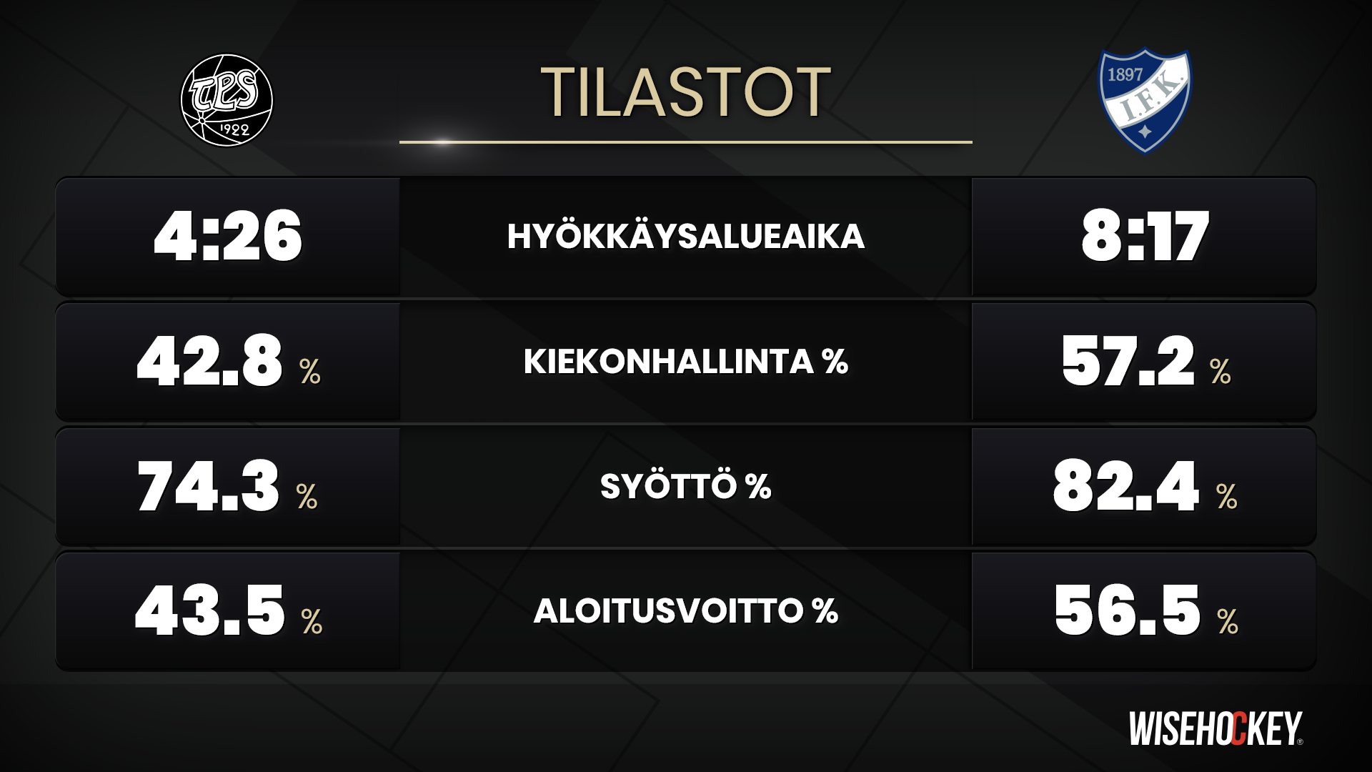 Turkulaiset olivat läpi puolivälierien löytäneet keinot roikkua pelissä ja sarjassa mukana vaikka stadilaisilla olikin kiekonhallinta ja ottelut hyvin hallussaan. Neljäs kohtaaminen joukkueiden välillä oli jälleen numeroiden valossa tiukka.