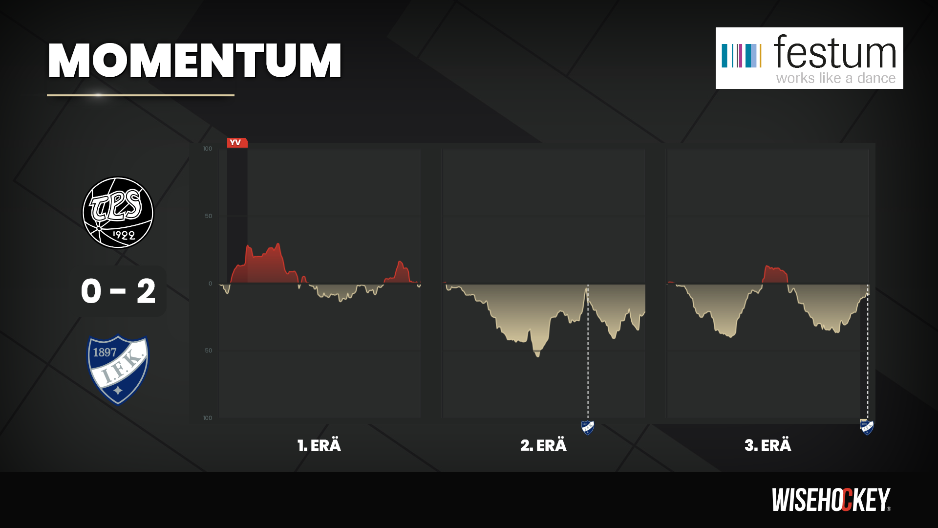 Kolmas erä oli tarkkaa pelaamista Gimmoilta, eikä aikasempien pelien kaltaisia oman pään virheitä nähty. Ottelun ja TPS:n kevään lopullinen ratkaisu nähtiin 14 sekunttia ennen päätössummeria kun kirsikkana kakun päälle Salonen viimeisteli tyhjiin IFK:n toisen osuman.